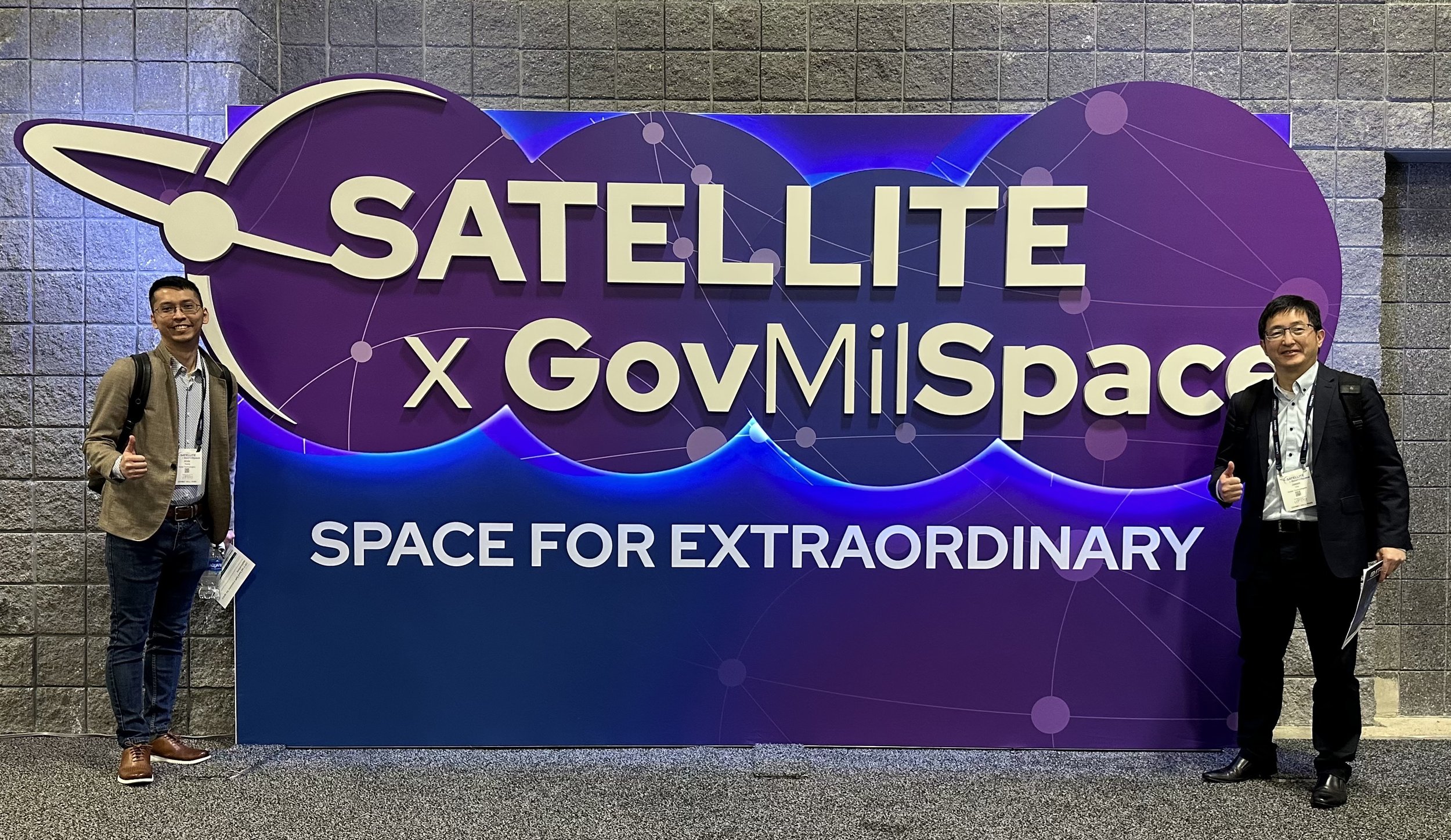 From left to right: Alvis Huang, Founder & CEO, and Jason Cho, VP of Sales, at Satellite 2026 in Washington, D.C.
